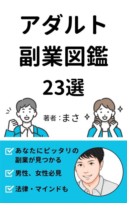 下記のKindle本「アダルト・エロ副業図鑑23選」も受け取れます。ママ活についても触れています。